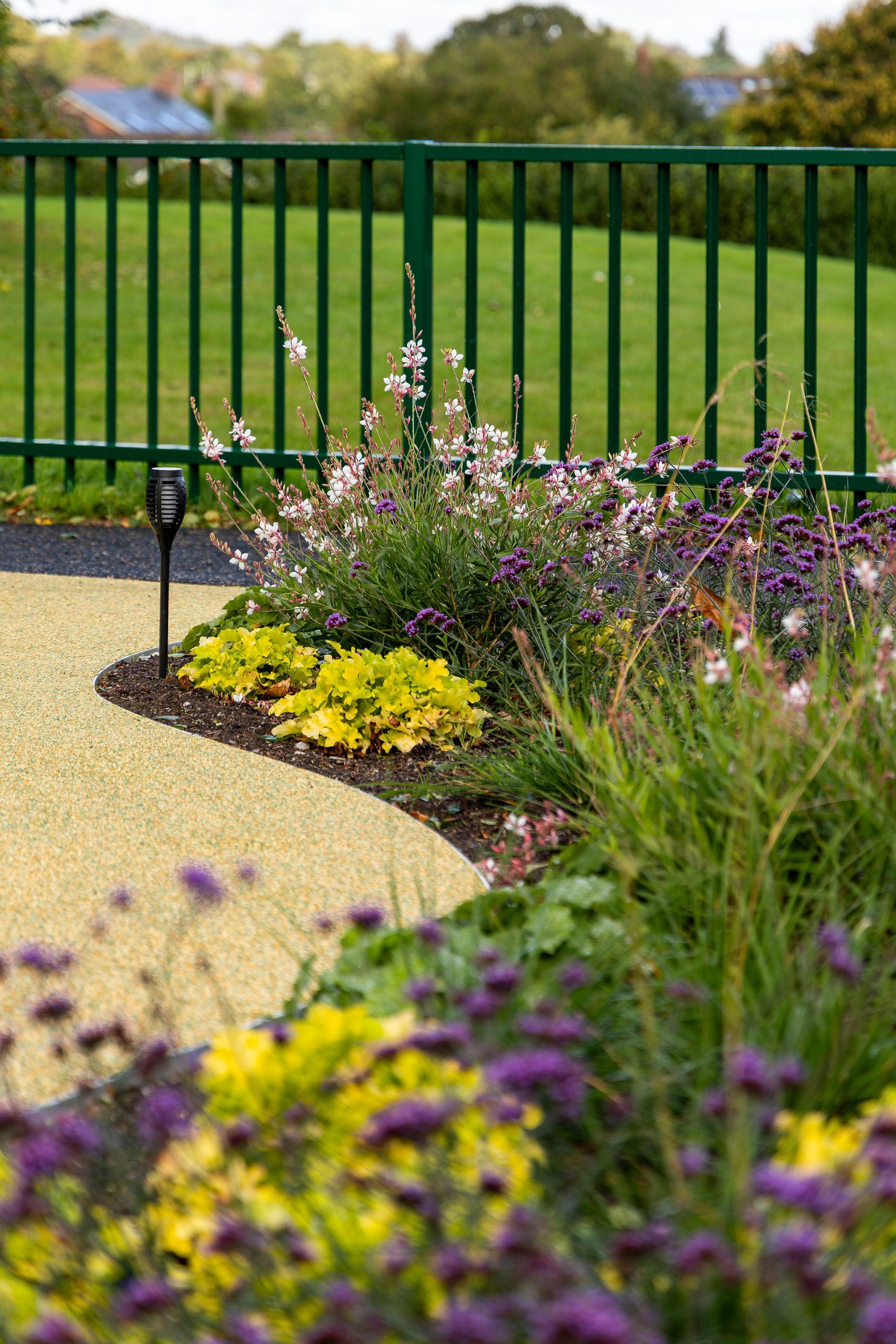 The planting brings a sense of calm and softness to the garden, weaving natural texture and colour through the space. Wildflower and grass areas introduce seasonal change, and sensory planting has been chosen for its fragrance and touch. Every element works together to create a gentle contrast to the play equipment, encouraging moments of exploration and rest.